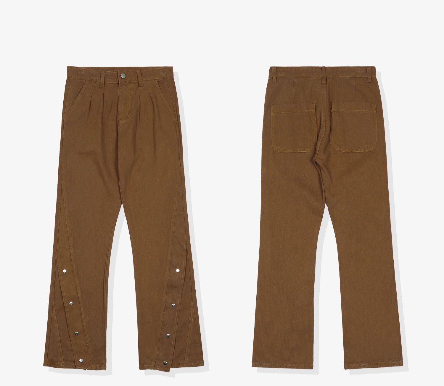 フロントスナップストレートカジュアルパンツ レディース パンツ ハイウエスト ジーンズ ロングパンツ ユニセックス アメカジ カジュアル ストリート 2カラー a4168
