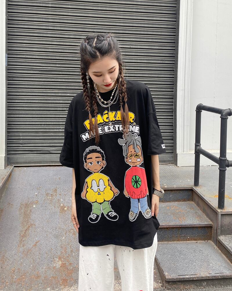 プリント半袖Tシャツ オーバーサイズ 半袖Tシャツ Tシャツ レディース ユニセックス アメカジ カジュアル ストリート 3カラー a4170