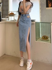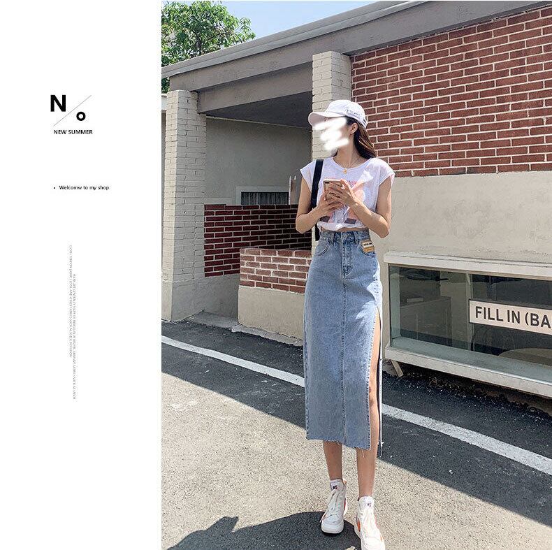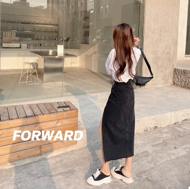 スリットデニムスカート ハイウエスト デニムスカート スリット ロングスカート デニム スカート 美脚 スリム Aライン レディース オルチャン 韓国 2カラー. a4172