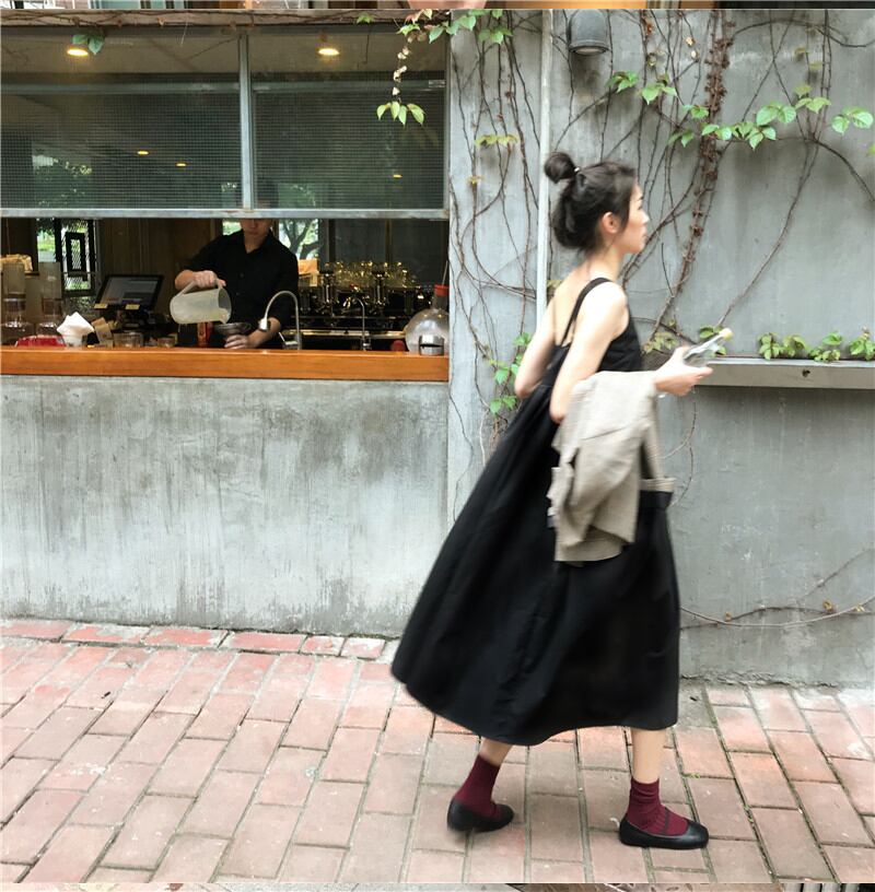Vネックキャミソールワンピース ブラックワンピース サスペンダー ワンピース ドレス サマーワンピ ブラックコーデ レディース ママコーデ. マタニティー 大人可愛い a4178