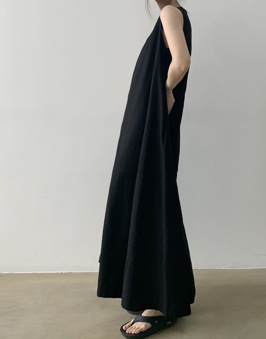 ノースリーブ ロング マキシ ワンピース Aライン フレア 大人かわいい ドレス サマーワンピ ブラックコーデ レディース ママコーデ. マタニティー a4179