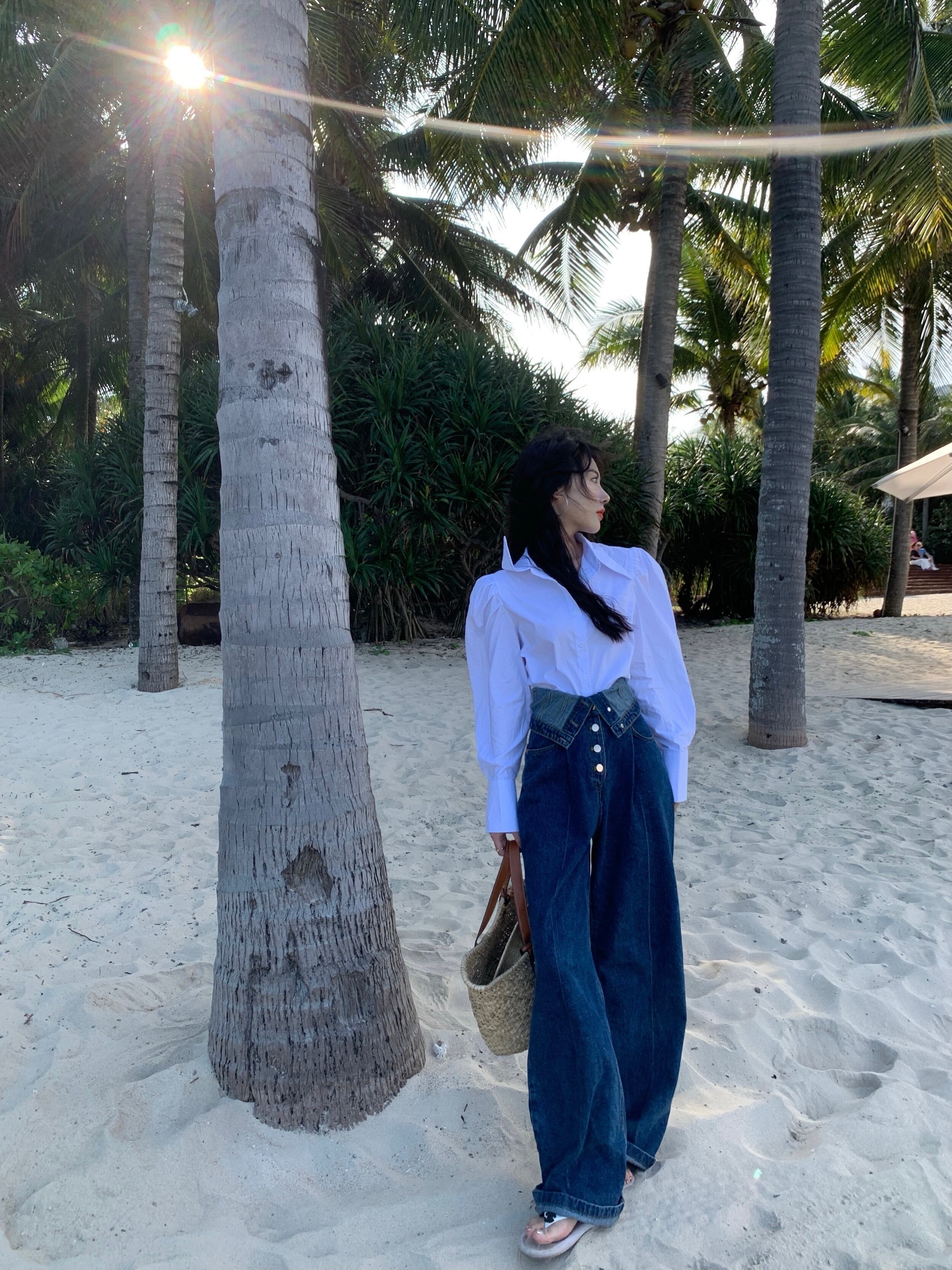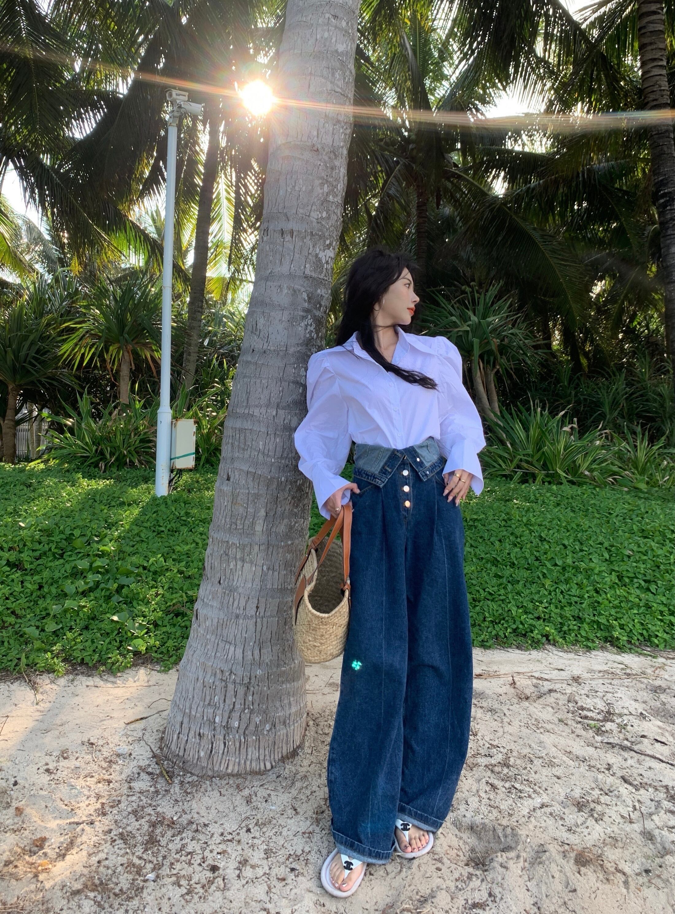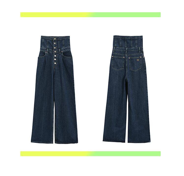 ハイウエストワイドジーンズ ワイドデニム ジーンズ デニム ハイウエスト 脚長 ボトムス 折り返し モップパンツ a4196