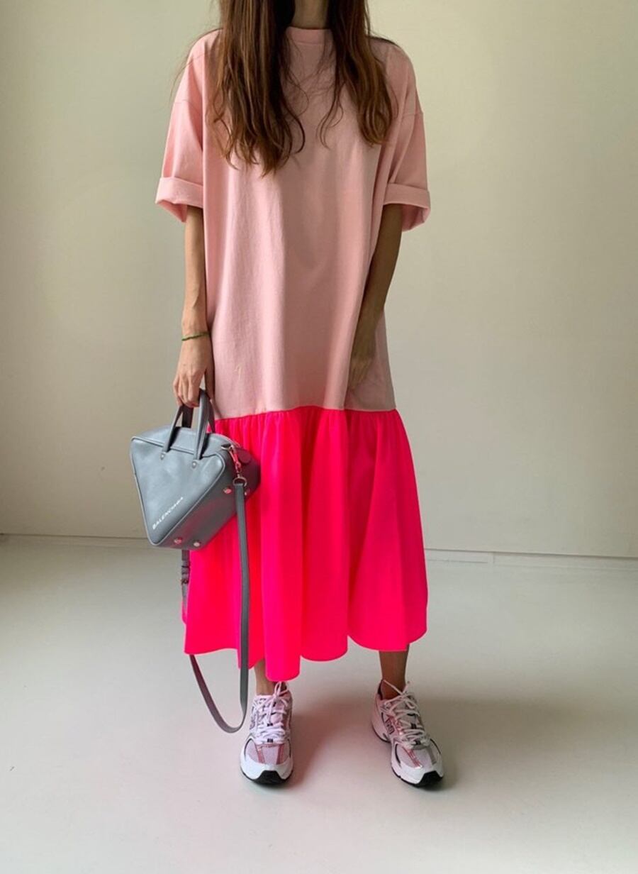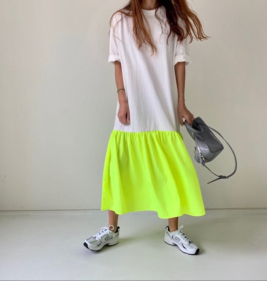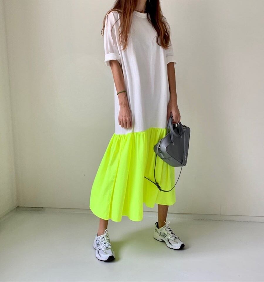 裾のネオンカラーがとってもオシャレなTシャツワンピース
