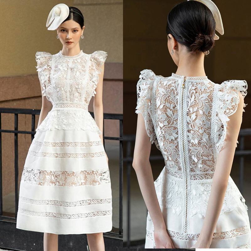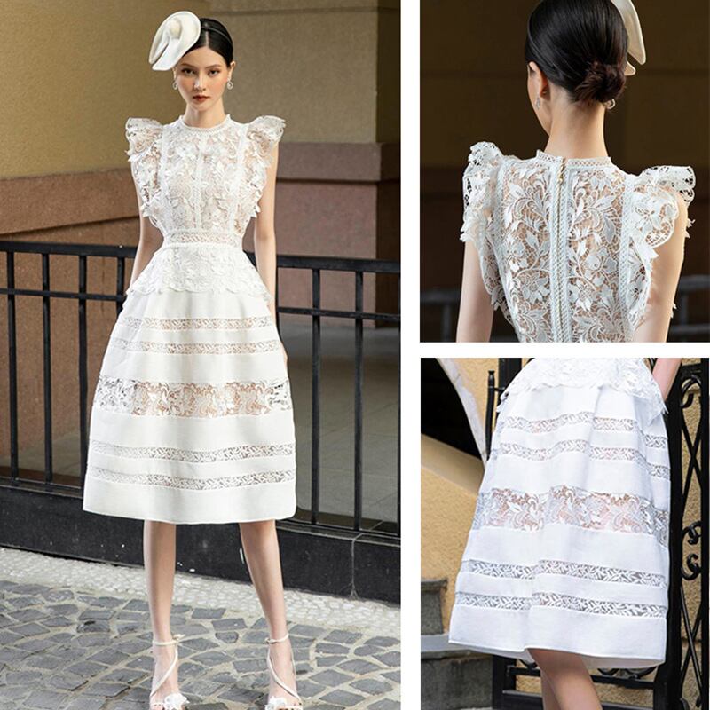 総レース パーティドレス レース刺繡ワンピース ミディアムワンピース ドレス ワンピース お呼ばれ ミドルワンピース パーティー ホワイト a4235