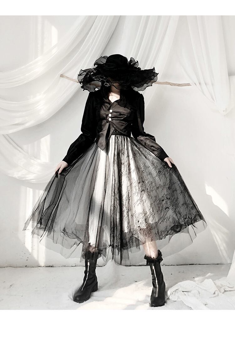レイヤーメッシュスカート Aラインスカート レディース チュチュスカート 春秋 レースステッチ スカート a4255