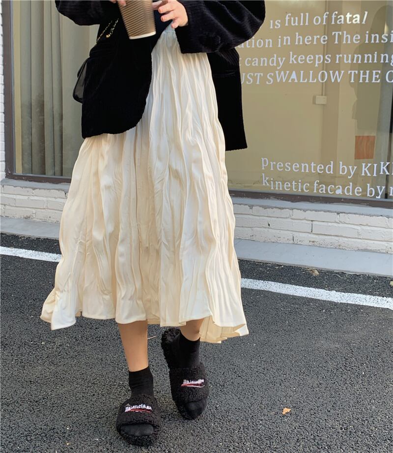 しわ加工プリーツスカート プリーツスカート クリンクルスカート ハイウエスト Aラインスカート. スカート レディース 2カラー a4257