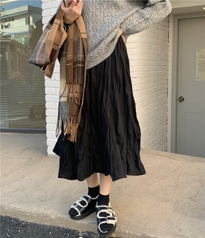 ラフなプリーツのようなシワ加工がトレンドライクなミドル丈スカート
