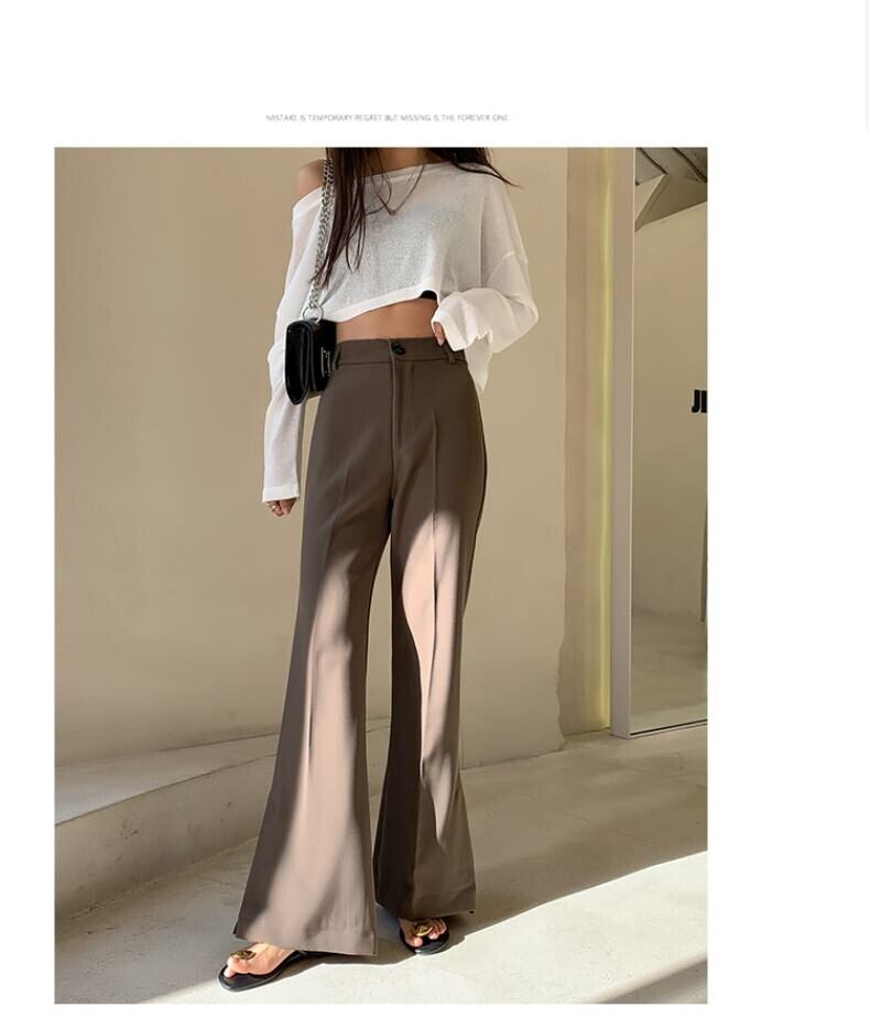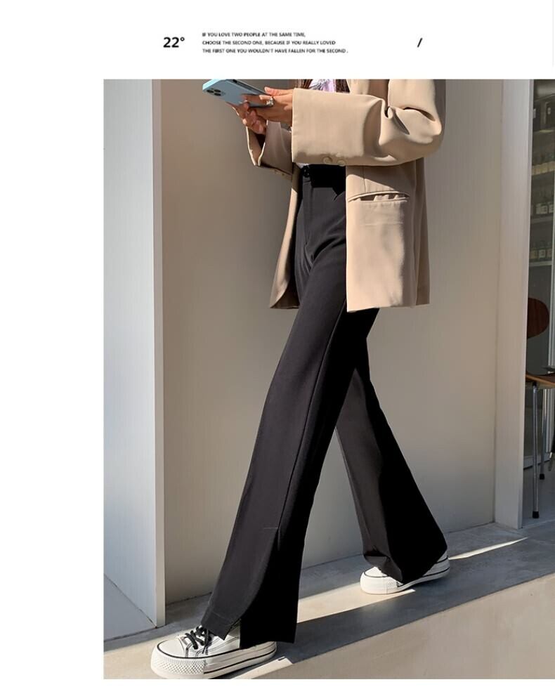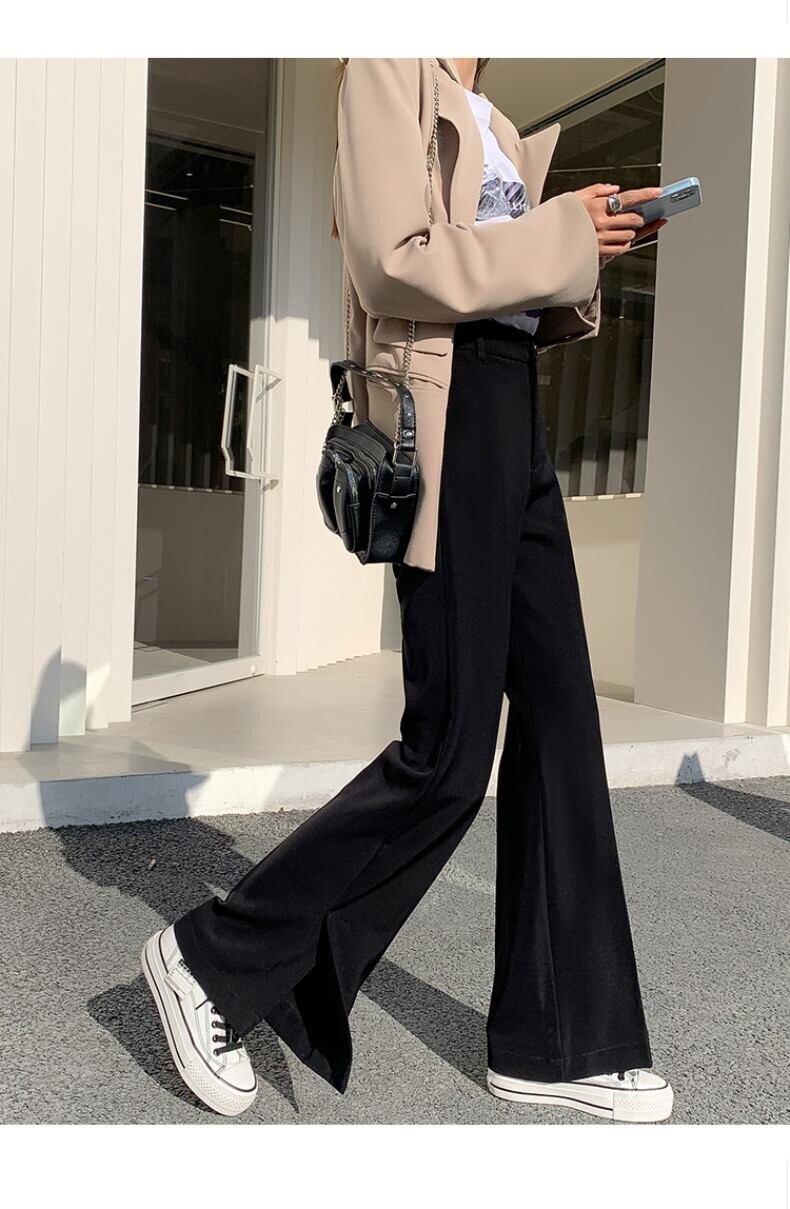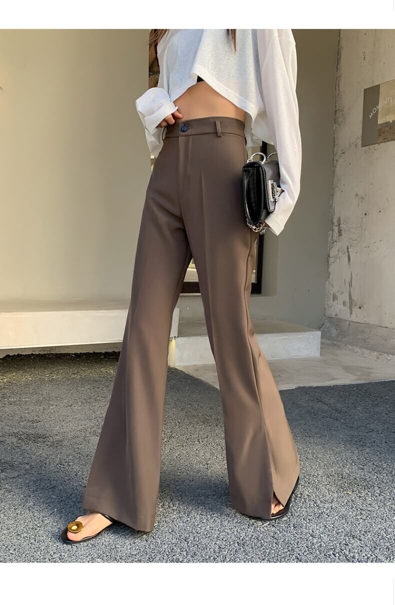 センタープレスフレアパンツ カジュアルパンツ ハイウエスト ドレープ フレアパンツ スリット カジュアル レディース 2カラー a4287