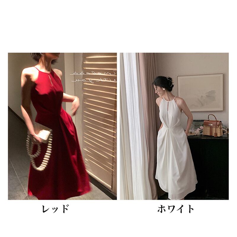 ノースリーブシフォンドレス ワンピース ドレス レディース ホルターネック ホワイトワンピース 夏 サマー サスペンダースカート サマードレス a4301