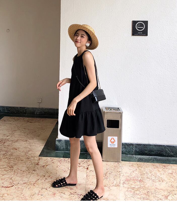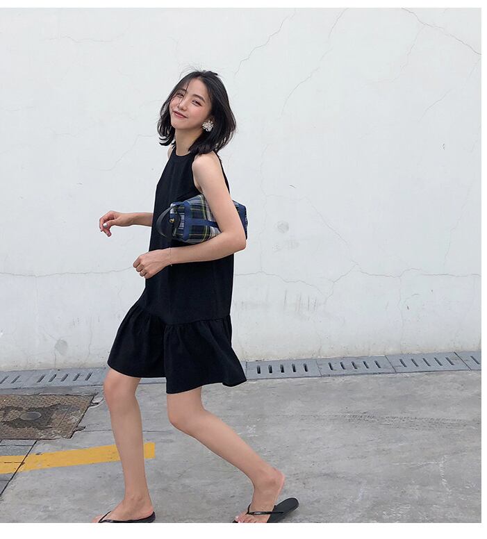 ノースリーブフリルワンピース ホルターネック フレアワンピース ブラック ワンピース ドレス レディース 膝丈 フレア Aラインワンピース ゆったり a4302