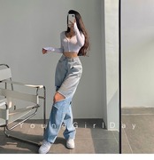 グラデーションカラーに大胆なダメージがカッコいいストレートジーンズ