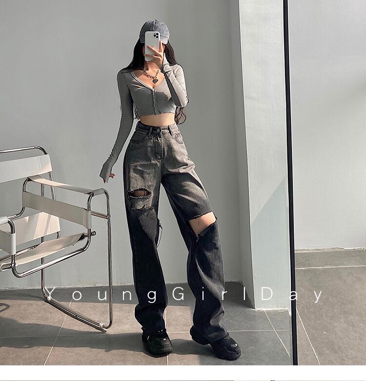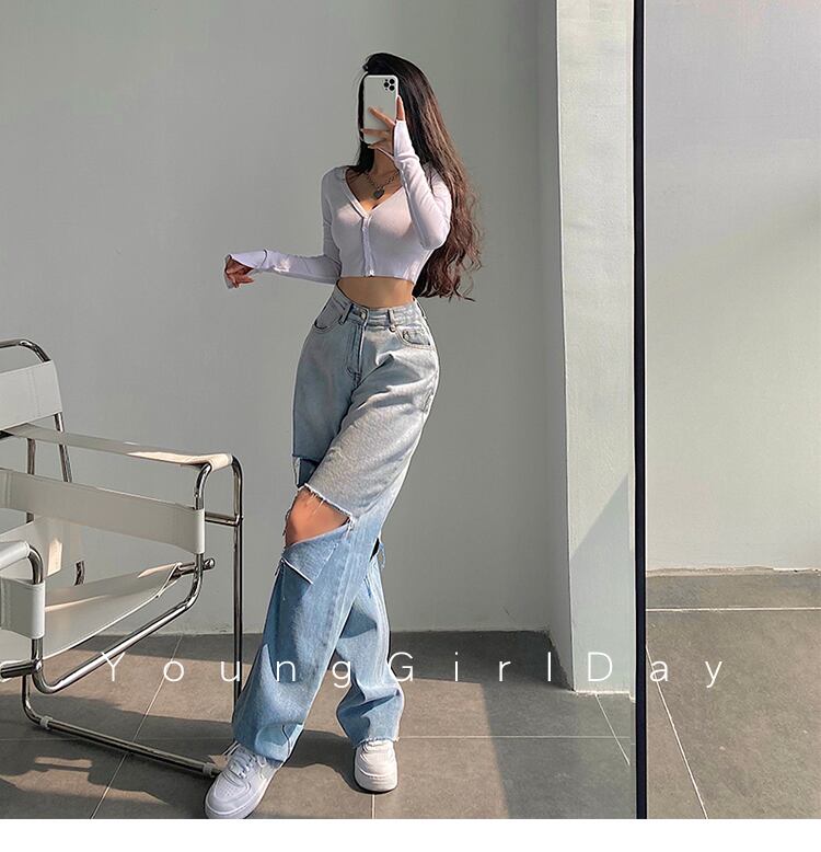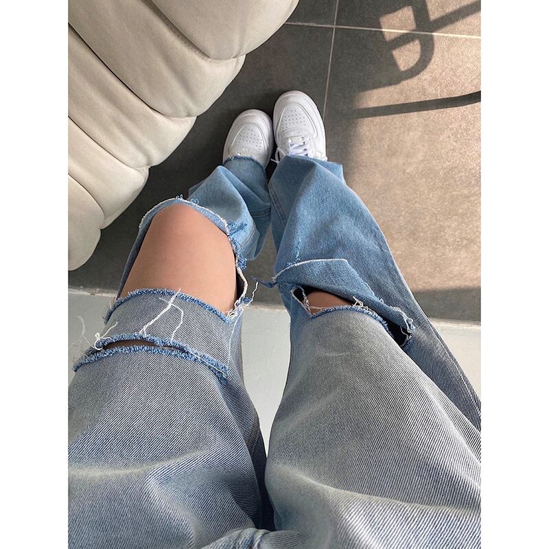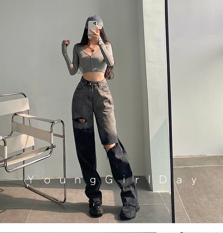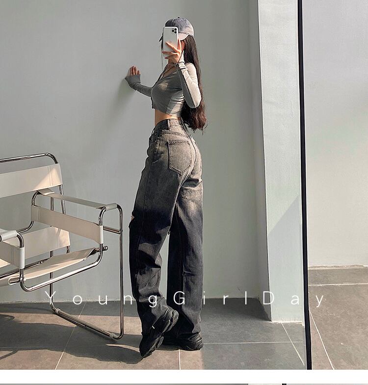 グラデーションストレートジーンズ ダメージジーンズ デニム ジーンズ ダメージデニム レディース ハイウエスト ルーズ. アメカジ カジュアル ストリート 2カラー a4315