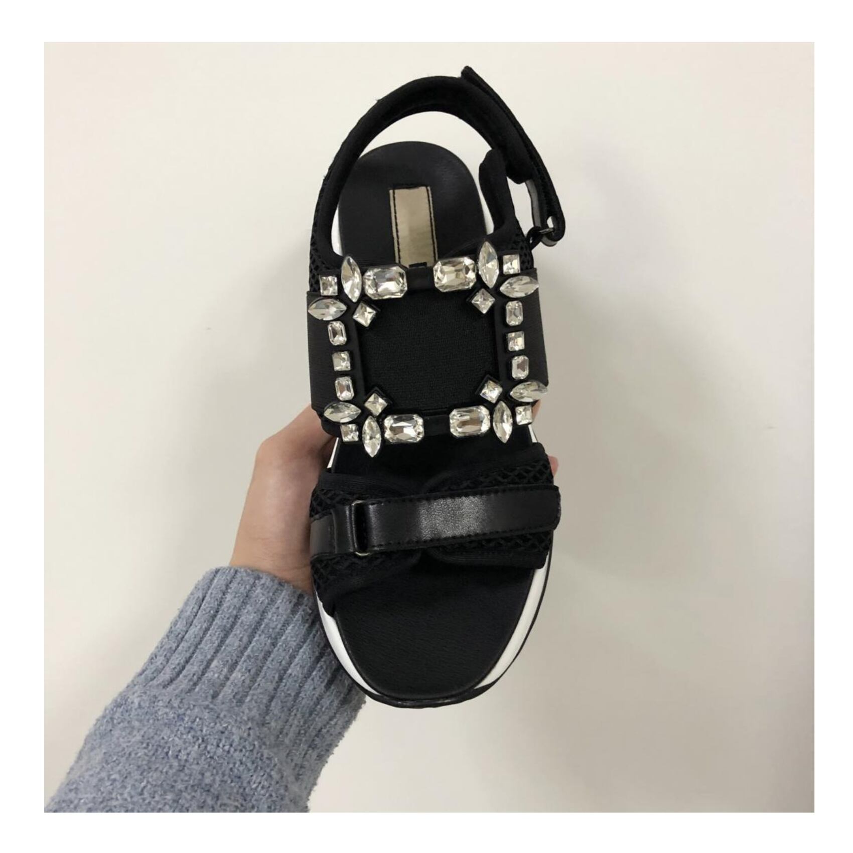 ビジュースポーツサンダル スクエア モチーフ コンフォートサンダル スポーツサンダル スポサン 厚底 プラットフォーム サンダル 5カラー a4348