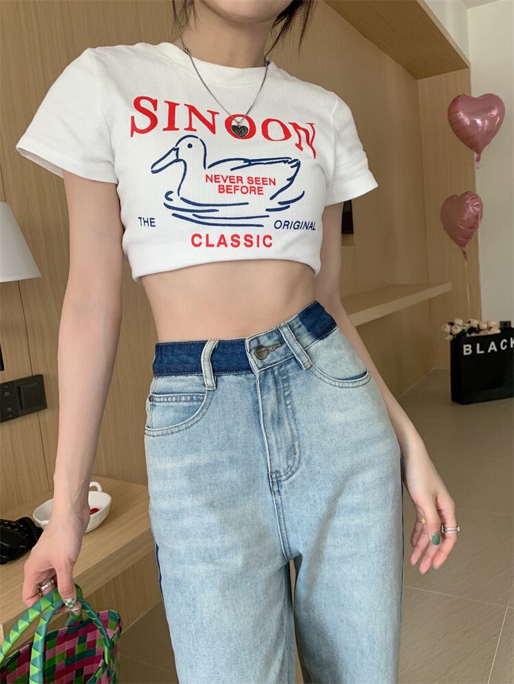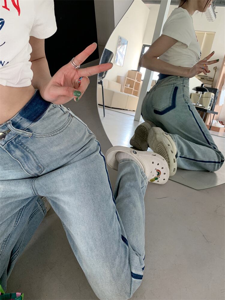 コントラストカラーストレートジーンズ ジーンズ デニム ストレートジーンズ レディース ハイウエスト ボトムス 美脚 ストレートパンツ a4349