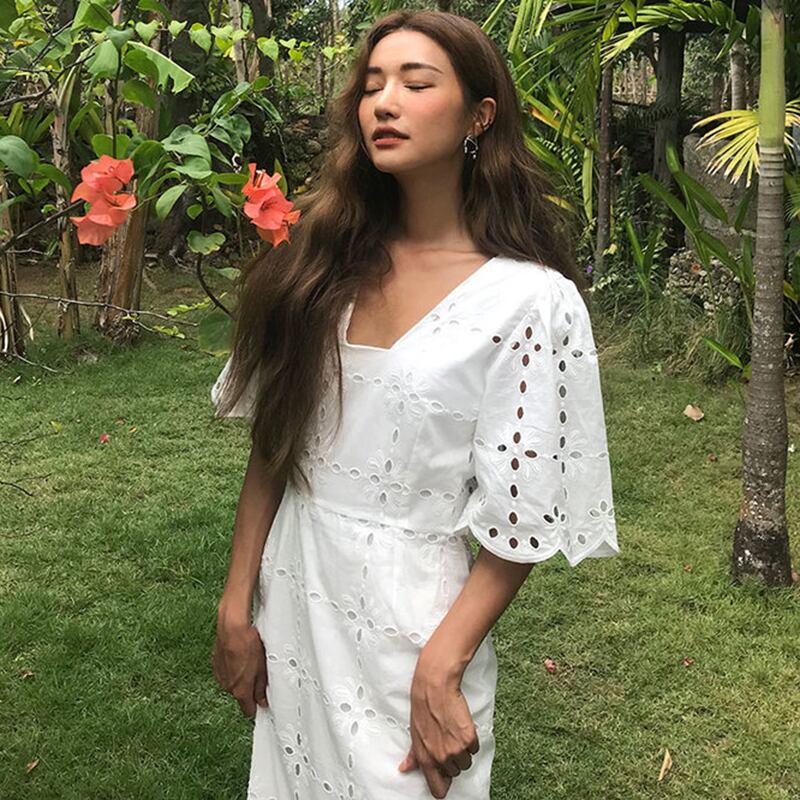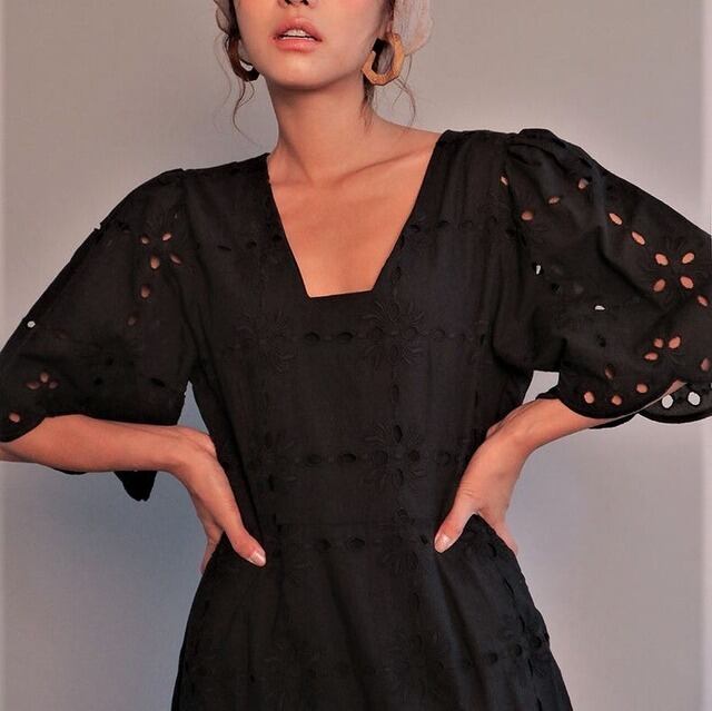 爽やかに夏の気分を楽しむパンチングレースワンピース