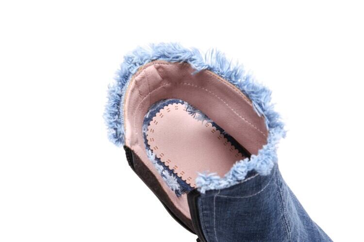 ダメージデニムブーツ ショートブーツ オープントゥ ブーツ ミドルブール ブーティー レディース デニム ョートブーツ シューズ オフィス 脚長 C34