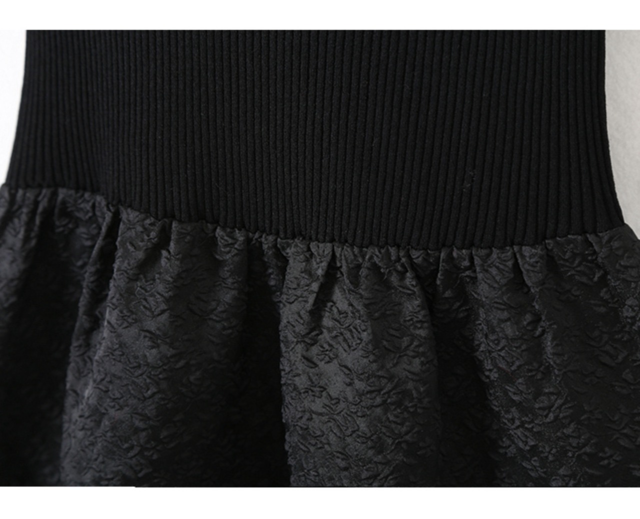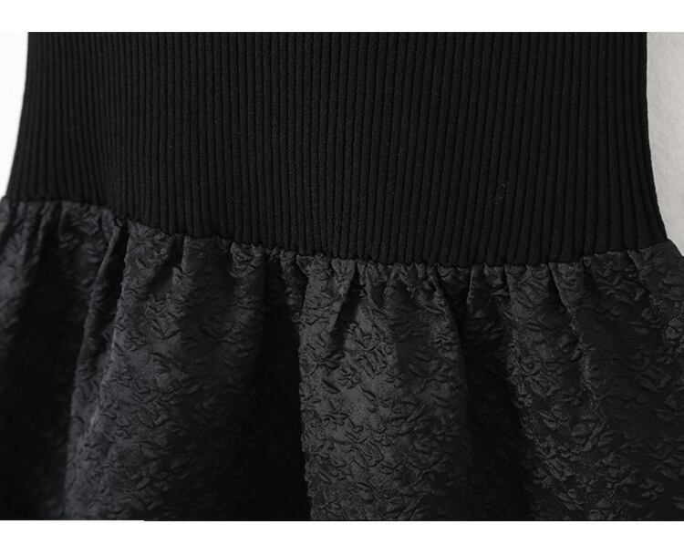 ドッキングリブニット半袖ワンピース 異素材 ワンピース ドレス 半袖 ニットワンピース ブラックワンピース ラウンドネック 綺麗め ブラックコーデ OLコーデ オフィス お呼ばれコーデ a4563