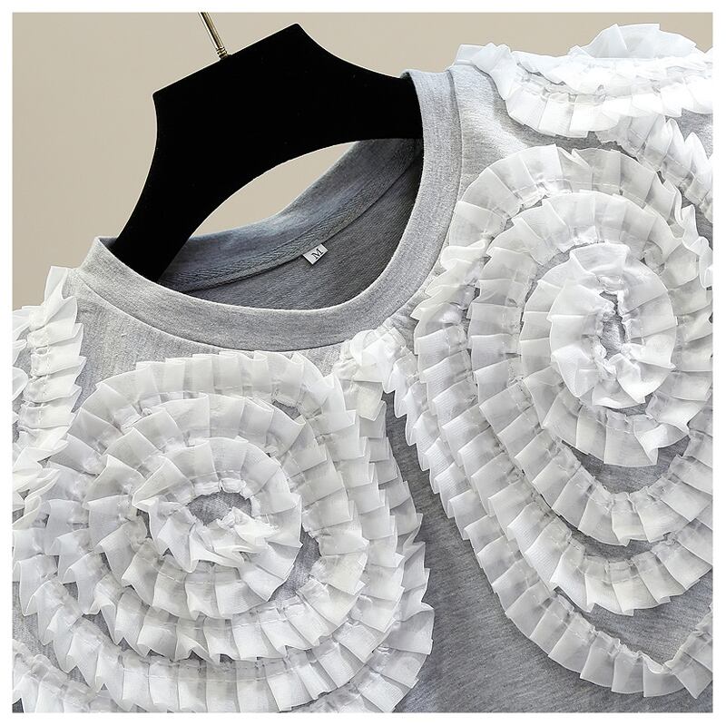 花柄フリル 半袖Tシャツ Tシャツ 半袖 トップス プルオーバー ウンドネック レディース ママコーデ お仕事コーデ オフィス 夏 a4562