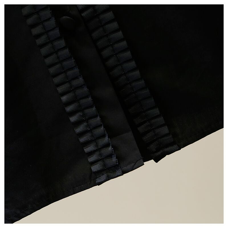 襟のフリルは高品質なグログランリボンが施されています。