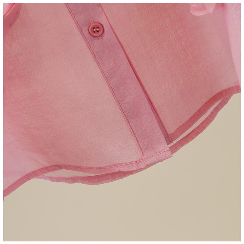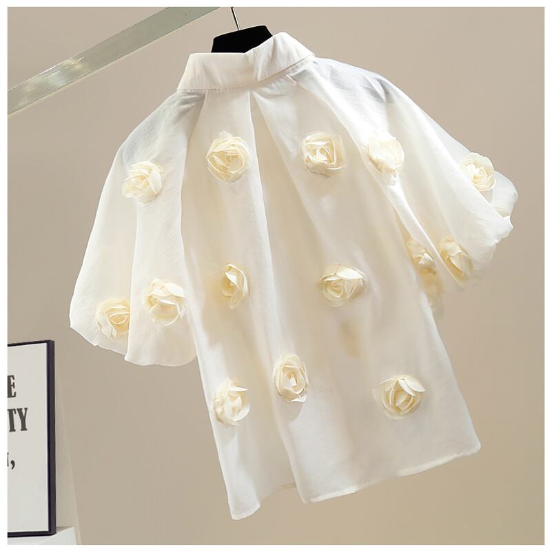 立体フラワー シアーシャツ 半袖 シャツ ブラウス ランタンスリーブ レディース ママコーデ お仕事コーデ オフィス 春 夏 秋 C96