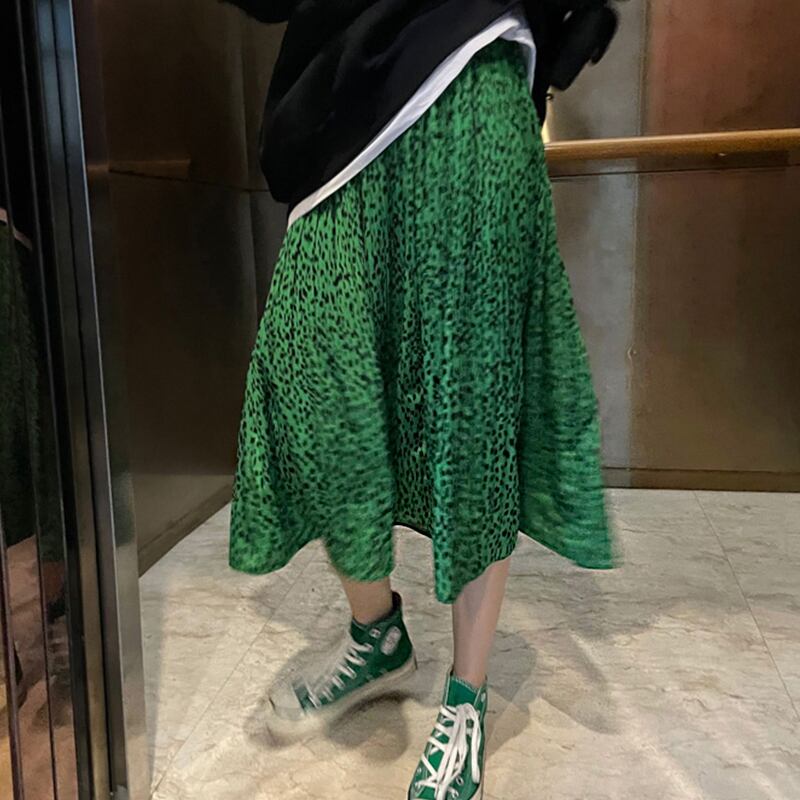 レオパード柄プリーツフレアスカート ヒョウ柄 プリーツフレアスカート プリーツ フレア スカート レディース ママコーデ お仕事コーデ マタニティーコーデ a4359
