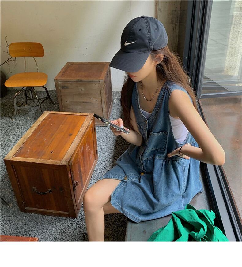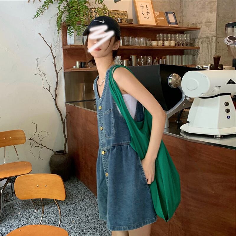 デニムワンピース デニムサスペンダードレス ミニ丈 デニムワンピ 夏 可愛い オルチャン Vネック レディース a4370