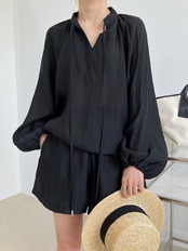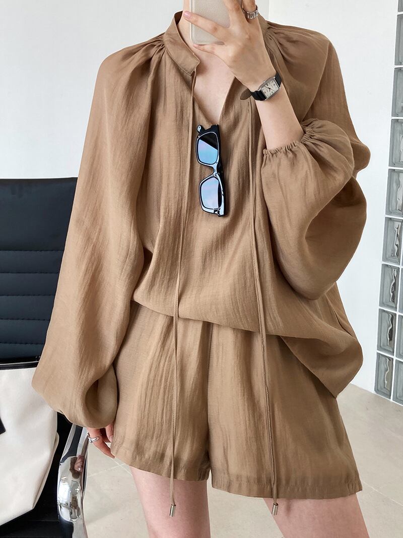 【セットアップ】Vネックブラウス+ハーフパンツ