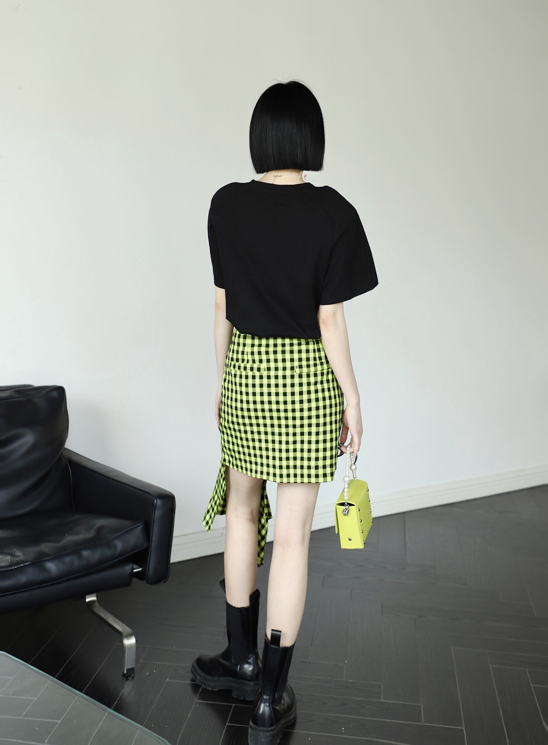 アシメントリー チェック柄スカート 英字ロゴ 半袖Tシャツ スカート チェック柄 アシメントリースカート レディース おしゃれ a4378