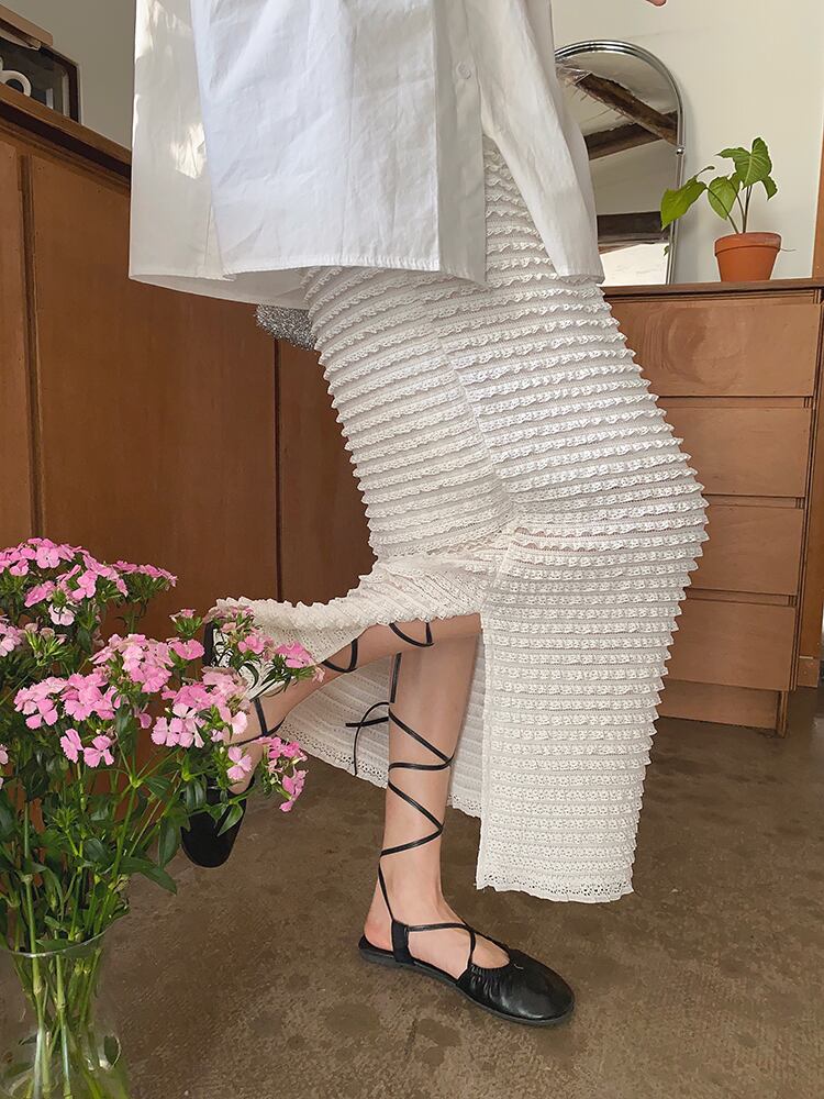 レースティアードスカート レーススカート ティアードスカート ケーキスカート ハイウエスト スカート スリット ミドル丈スカート レディース C81