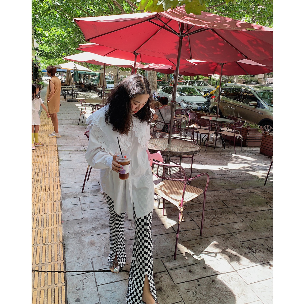 BIGレースカラーブラウス シャツ ブラウス 襟付き ボリュームスリーブ ロングシャツ レディース モード系 ママコーデ オフィスコーデ 長袖 C44