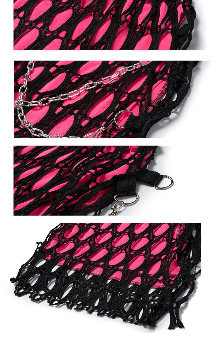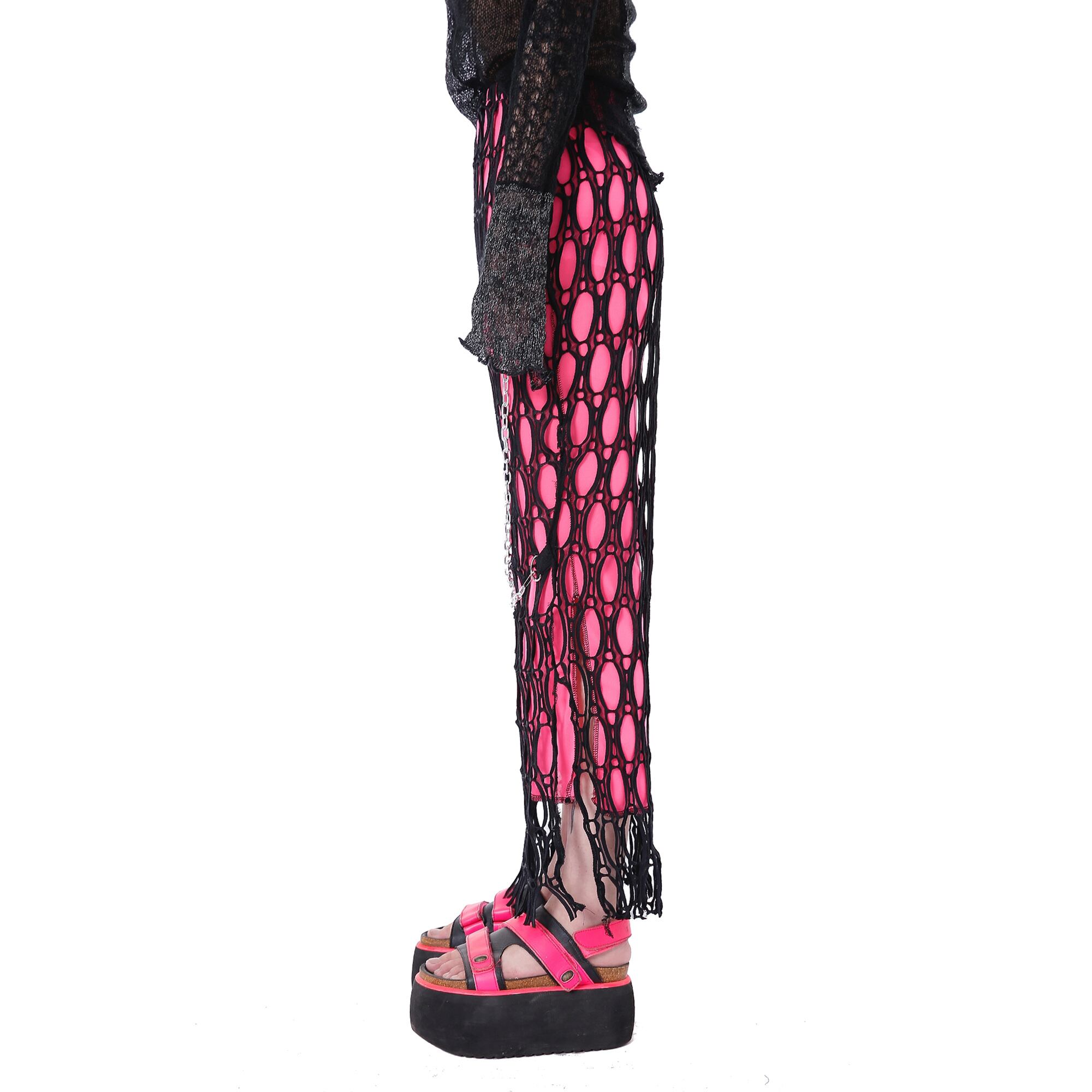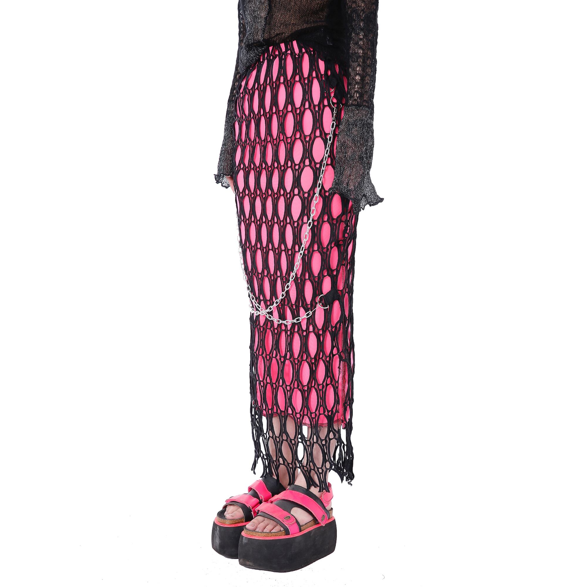 チェーン付き メッシュスカート ビビッドカラー スカート ピンク サイドスリット ロングスカート オシャレ レディース モード系 ロック ゴスロリ C46