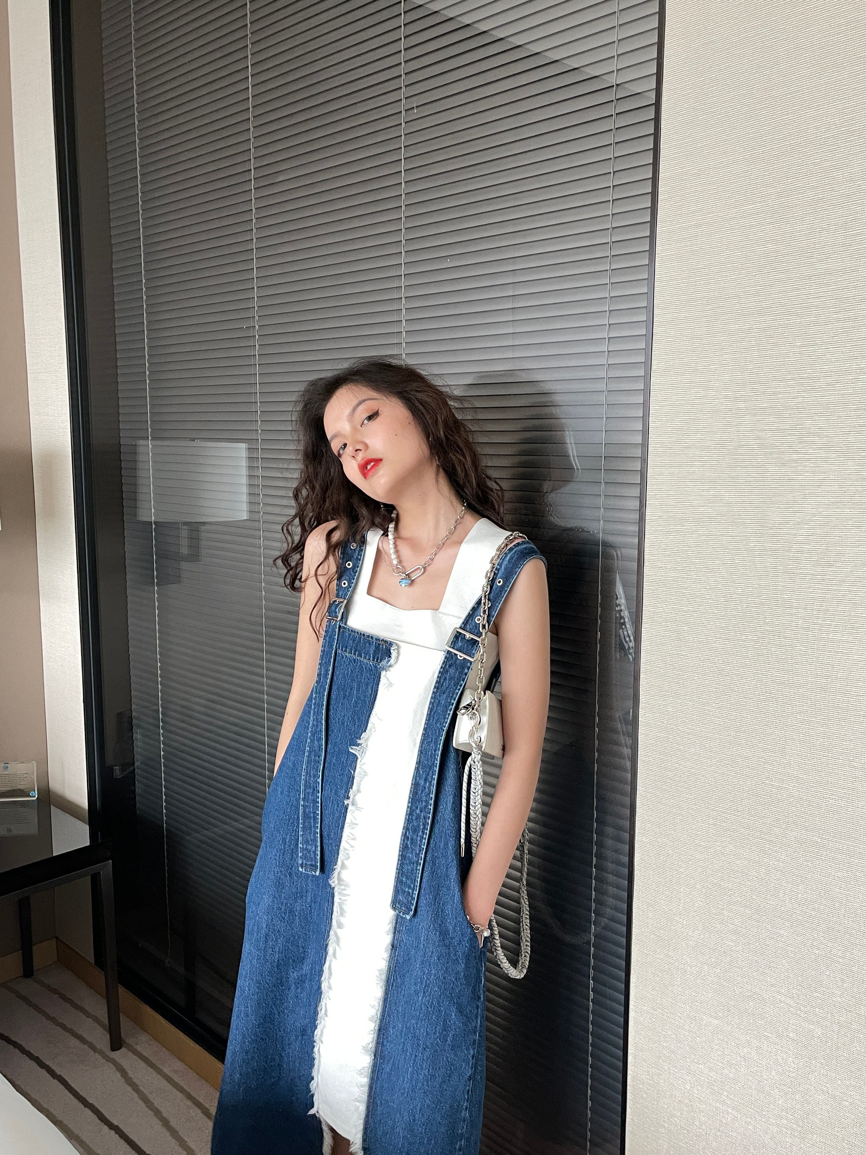 デニムサスペンダースカート デニムワンピース. デニム サスペンダースカート デニムワンピ. レディース バイカラー ツートーン ドレス ワンピース. モード系 オシャレ ママコーデ a4466