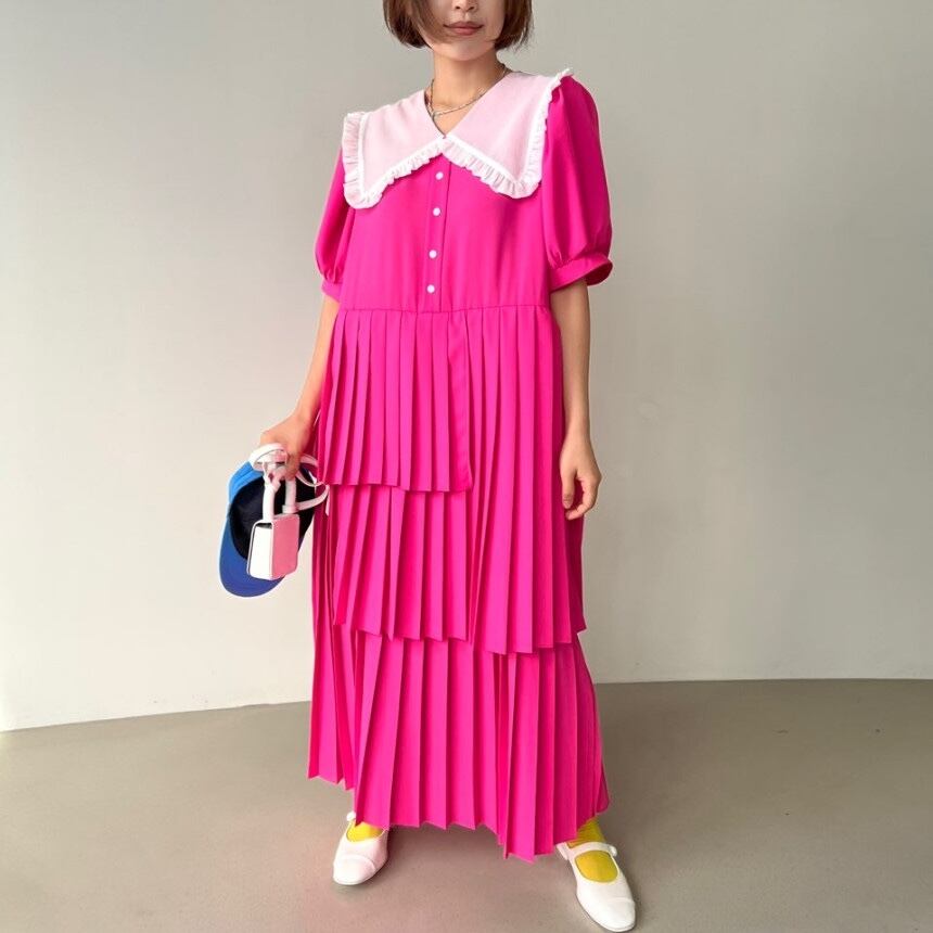 夏にピッタリなvividカラーが魅力的なプリーツワンピース