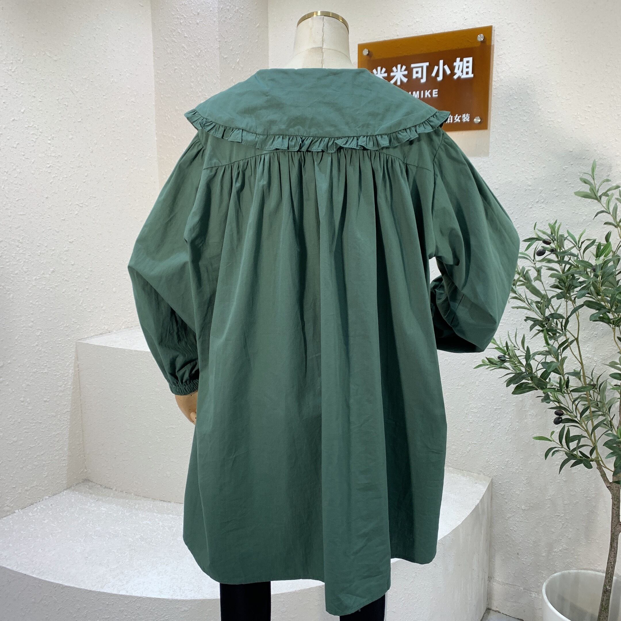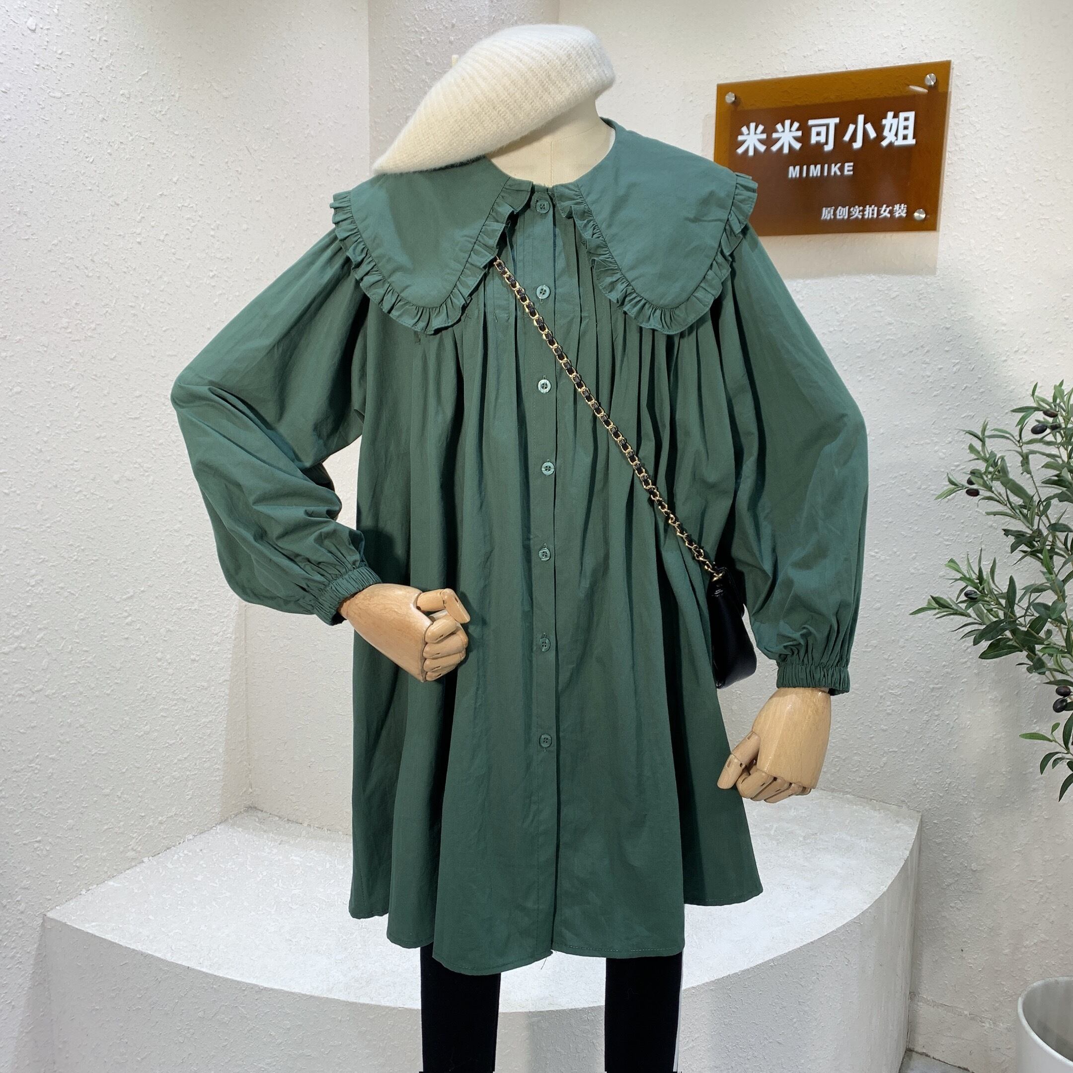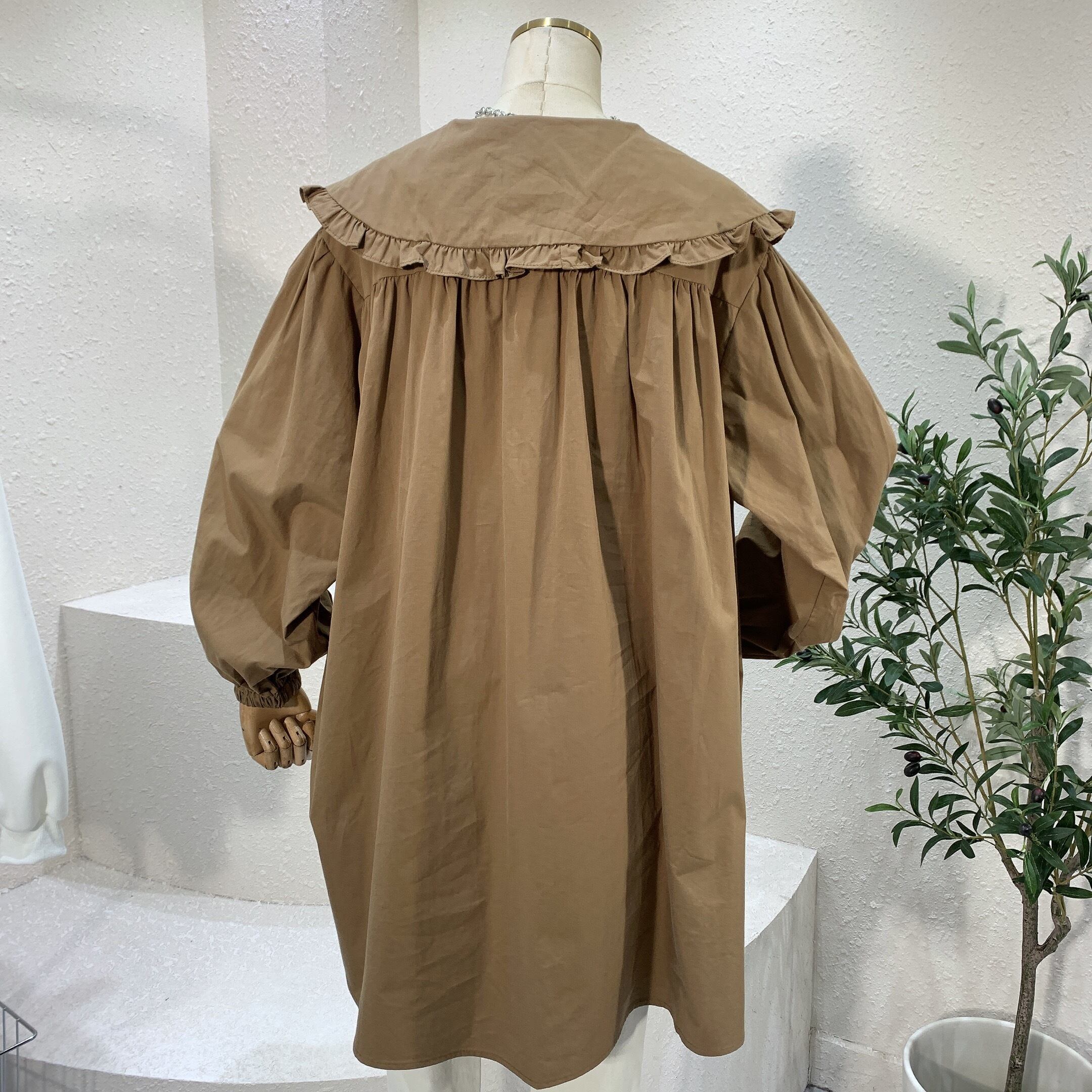 BIGフリルシャツ ブラウス シャツ 長袖 フリルシャツ フリルブラウス レディース トップス ワンピース ママコーデ マタニティーコーデ お仕事コーデ プルオーバー a4416