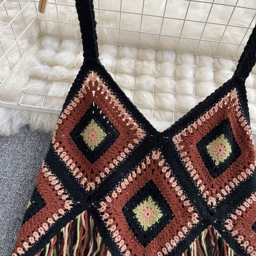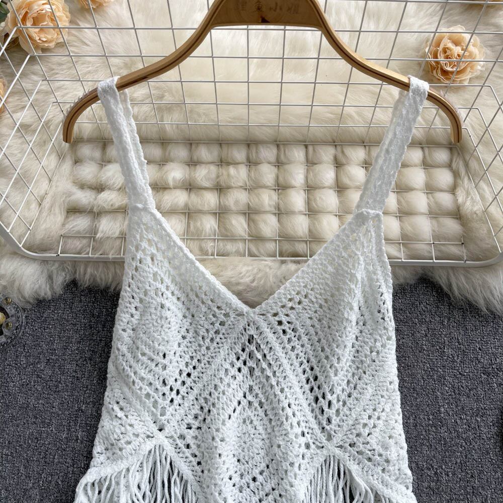 春夏トレンドファッション クロシェ編みニットフリンジキャミソール