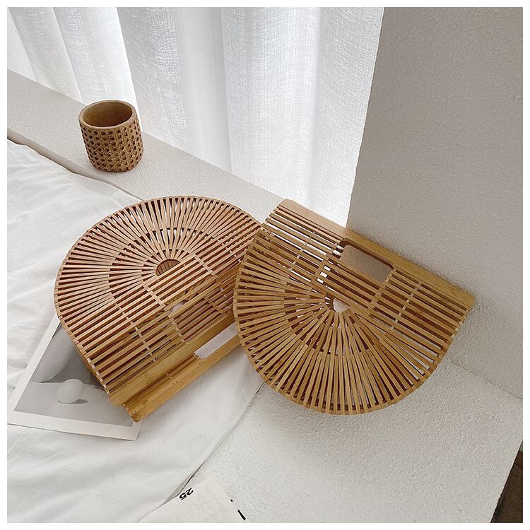 ハーフムーン バンブーバッグ 竹 カゴ かごバッグ 半月バッグ レディース サマーバッグ クラッチバッグ シンプル バスケット ハンドバッグ a4441