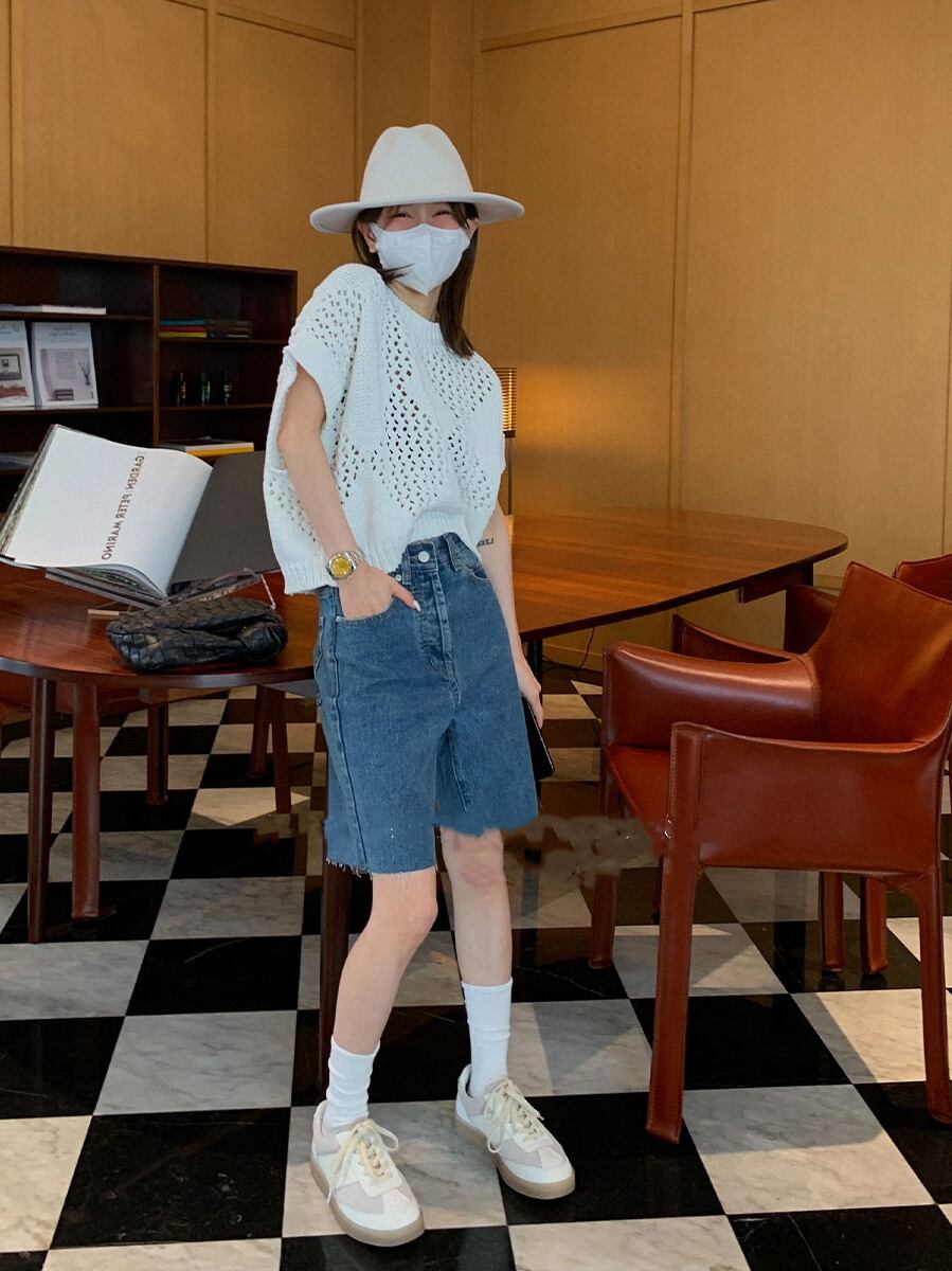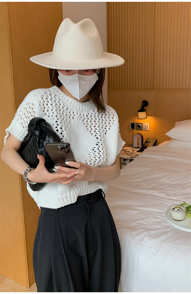 かぎ編み ニットセーター ハーフスリーブ ニット セーター. トップス プルオーバー レディース レイヤード カジュアル ママコーデ お仕事コーデ オフィスコーデ a4450