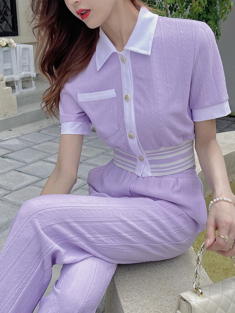 【セットアップ】半袖 トップス+ワイドパンツ
