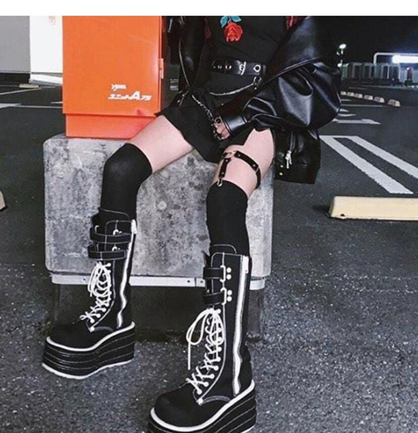 ゴスロリ感溢れるデザインがオシャレな厚底ロングブーツ