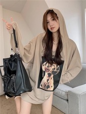 プリントパーカー 長袖パーカー フーディー パーカー 長袖 トップス プルオーバー オーバーサイズ Tシャツ レディース オルチャン C80