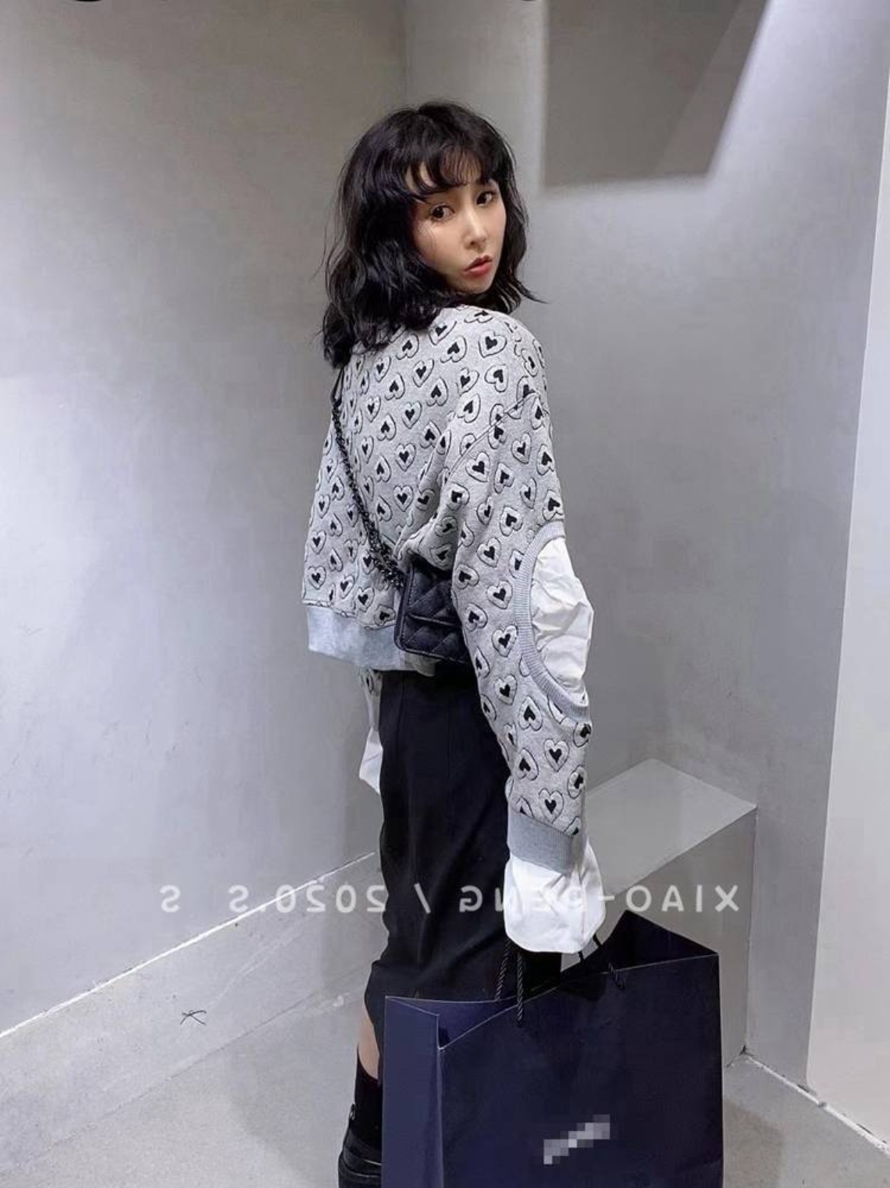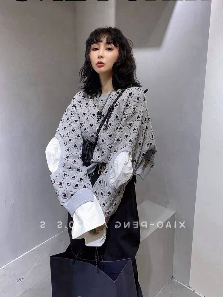 ドッキング風 ハート柄トップス スウェット トレーナー. シャツ 重ね着風 レディース トップス カジュアル C82