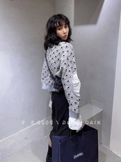 甘すぎないハート柄にヒジと袖口から出したシャツがオシャレなドッキング風 ハート柄トップス