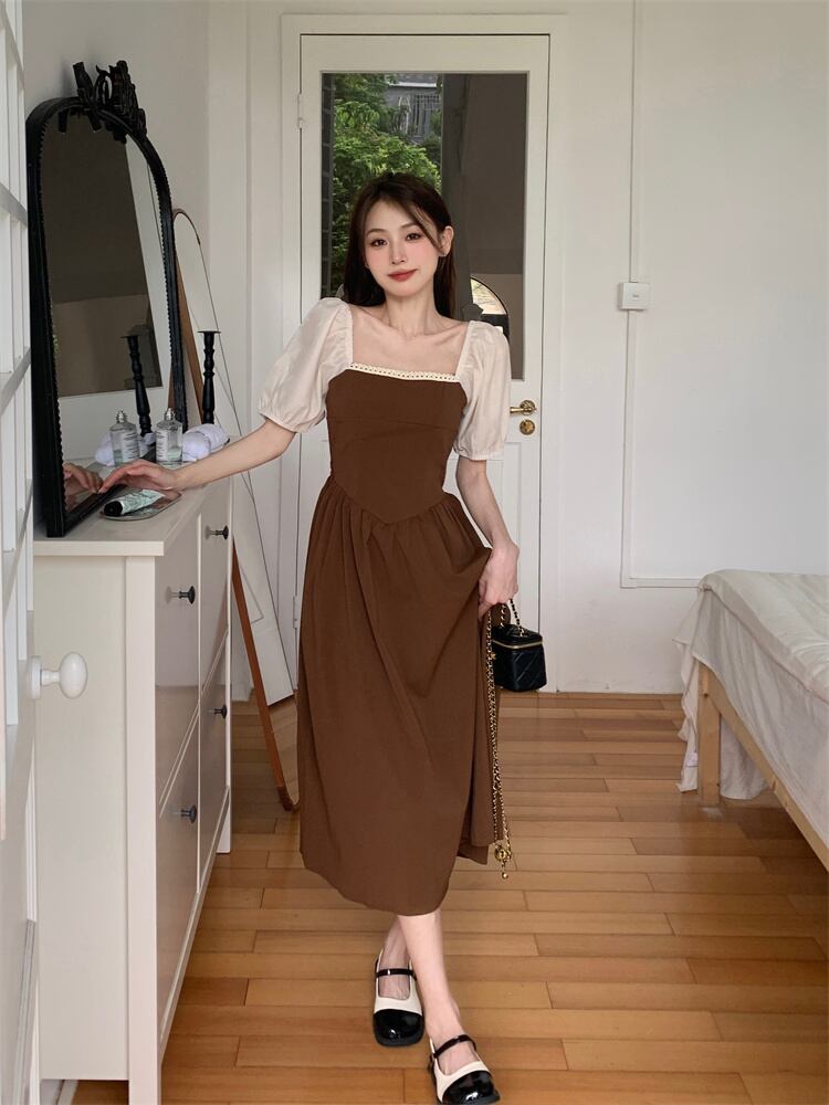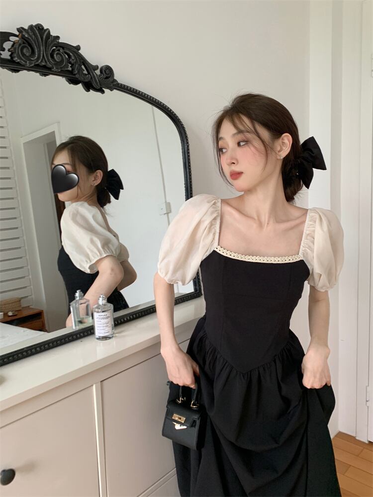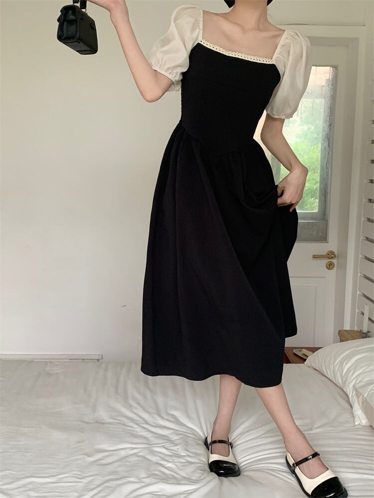 スクエアネック ワンピース パフスリーブワンピース パフスリーブドレス 半袖ワンピース ワンピース ドレス 上品ワンピース パフスリーブ フレンチドレス. プルオーバー レディース デートコーデ 通勤コーデ お仕事コーデ a4453