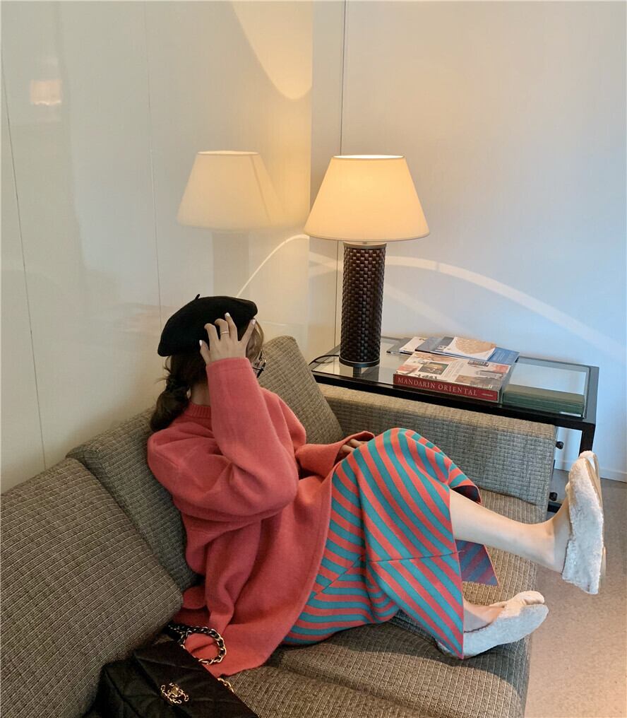 ストライプニットスカート ニットスカート ストライプ スカート ミドル丈 レディース 韓国 オルチャン ハイウエスト ニット オフィスコーデ ママコーデ デートコーデ オシャレ C88