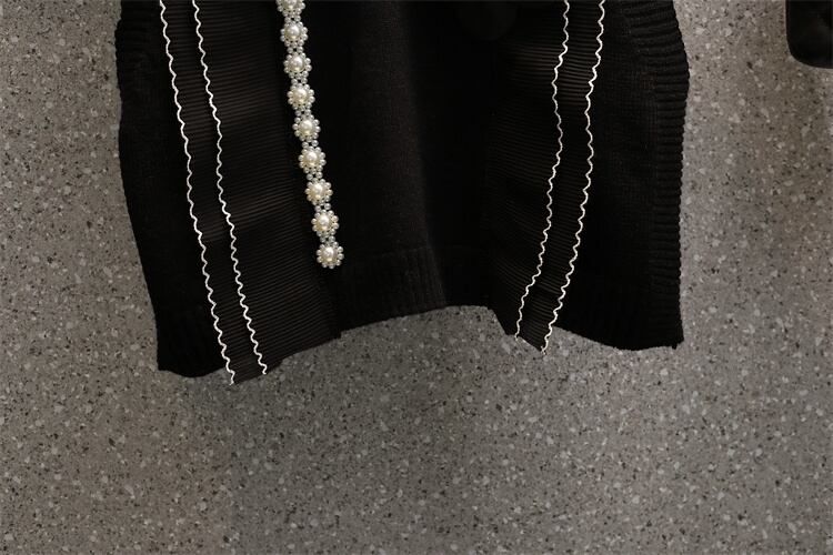 立体花と両端のビーズが印象的なニットベストと長袖シャツの2点SETです!