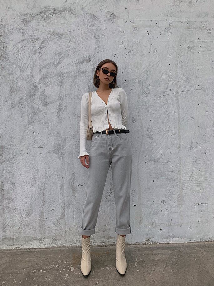 ハイウエスト ストレートジーンズ