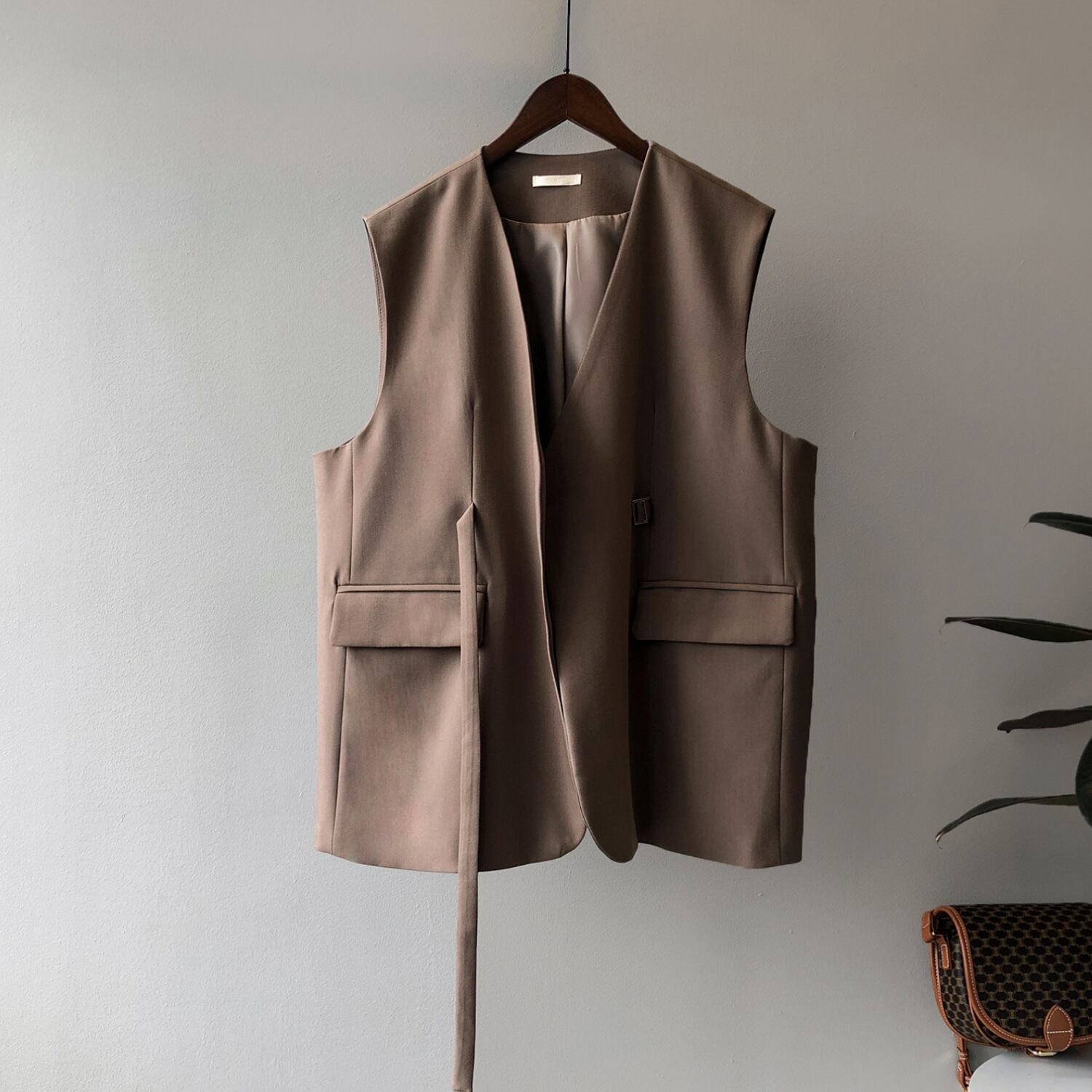 スーツカラーのカジュアルな中に上品さを感じさせるベストです☆