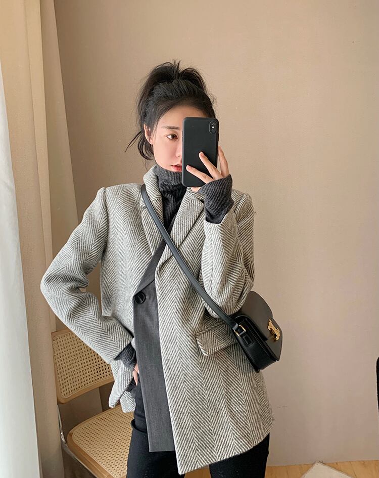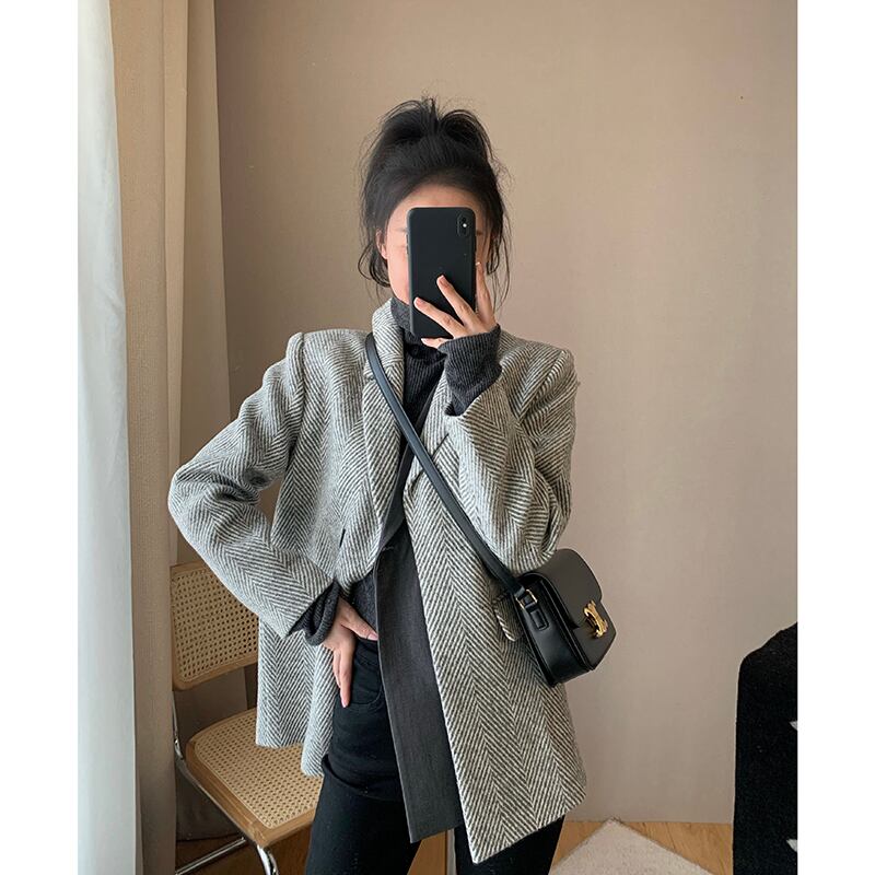 ヘリンボーンウールテーラードジャケット. 格子縞柄 テーラードジャケット ジャケット アウター レディース ゆったり 春 秋 冬 オフィスコーデ ママコーデ 体型カバー ニット カジュアル アメカジコーデ C227