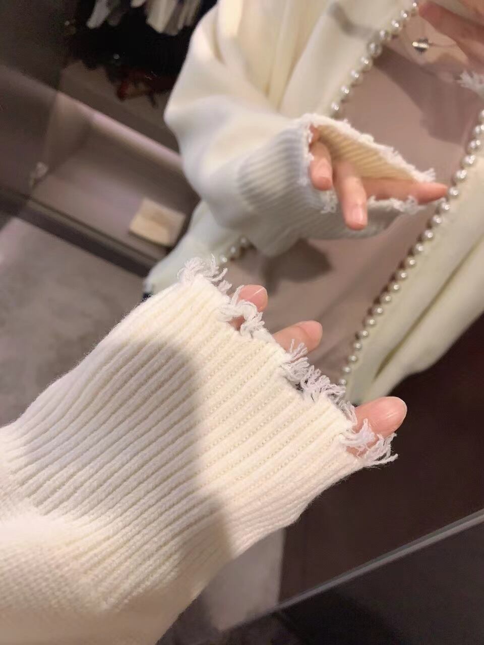 ふんだんに使われたパールが大人可愛いパールカーディガン