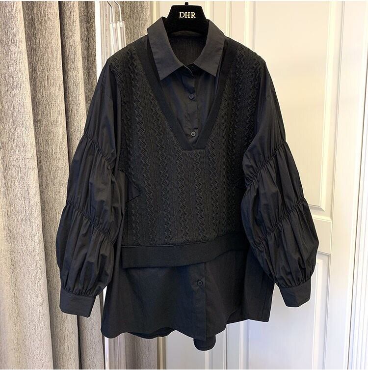 【M-3XL】【大きいサイズあり】ドッキング風長袖シャツ ニット シャツ ブラウス 長袖 トップス レディース レディース 春 秋 冬 オフィスコーデ ママコーデ 体型カバー C141